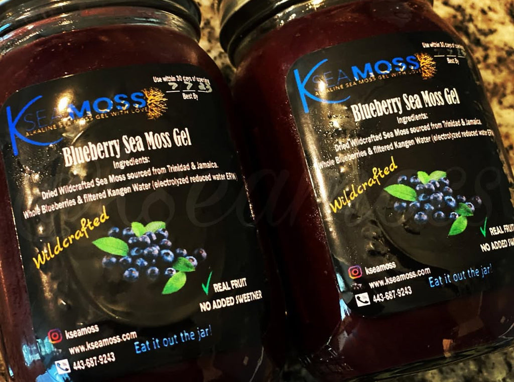 Sustainably sourced wildcrafted sea moss, & pressed blueberry juice.